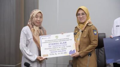 GOWA, NALARMEDIA — Bupati Gowa, Sitti Husniah Talenrang menyerahkan santunan jaminan kematian dari PT Taspen…