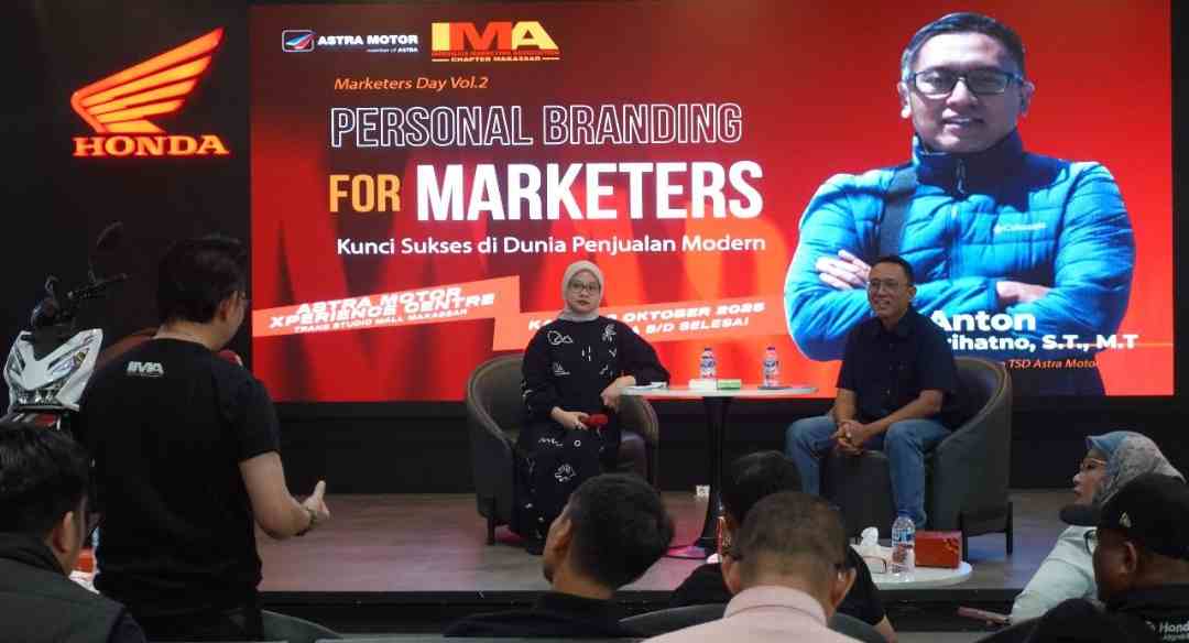 MAKASSAR, NALARMEDIA — Astra Motor Sulawesi Selatan (Asmo Sulsel), selaku main dealer sepeda motor Honda untuk wilayah Sulawesi Selatan, Barat, Tenggara, dan Ambon, kembali menjadi pusat perhatian dunia pemasaran dengan menjadi tuan rumah gathering Indonesia Marketing Association (IMA) Makassar Chapter, yang digelar pada Kamis, 16 Oktober 2025, di Astra Motor Experience Center (AMEC), Trans Studio Mall Makassar.