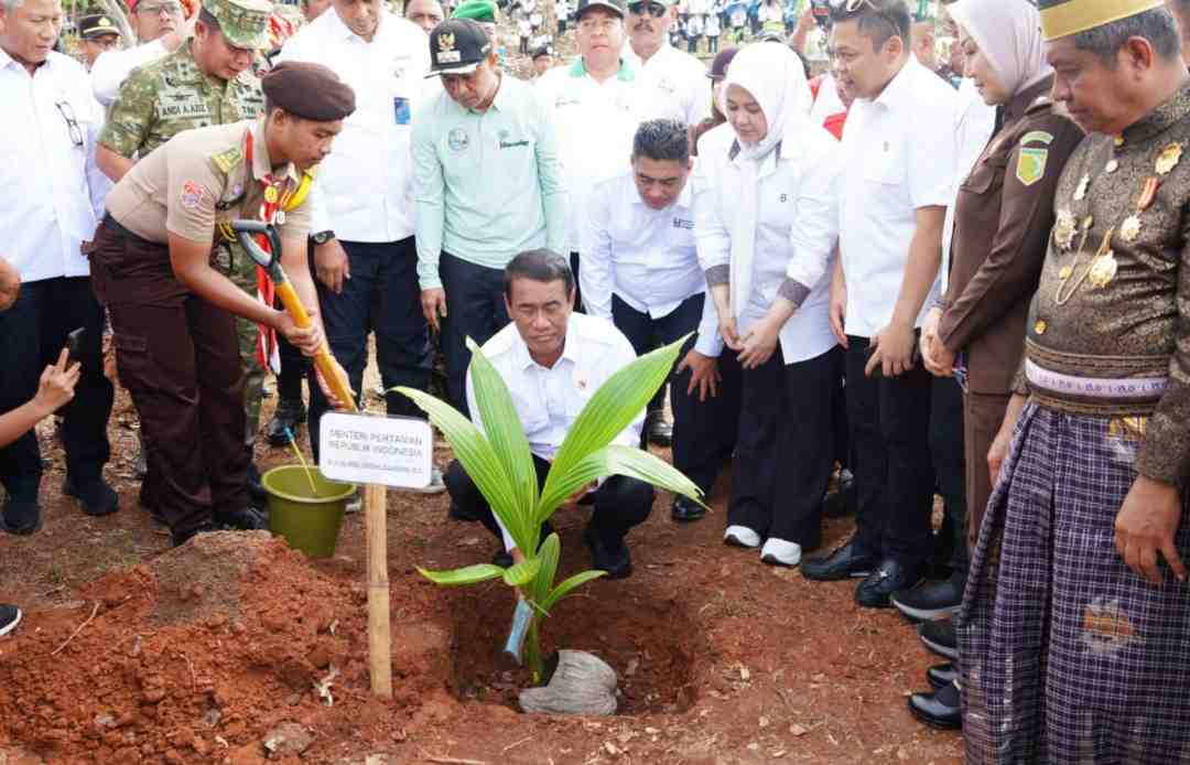 Mentan Andi Amran didampingi Wakil Gubernur Sulsel Fatmawati Rusdi menghadiri Launching Gerakan Menanam Lima Juta Pohon Kelapa (GEMERLAP) di Kokolohe, Desa Mekar Indah, Kecamatan Buki, Sabtu (15 November 2025).