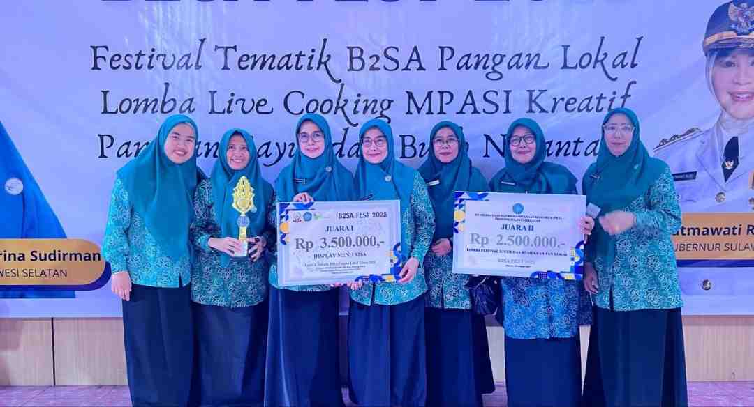 BONE, NALARMEDIA — Tim Penggerak (TP) PKK Kabupaten Bone borong dua gelar juara pada ajang bertajuk B2SA Beragam, Bergizi, Seimbang, dan Aman (B2SA) Fest 2025 tingkat Provinsi Sulawesi Selatan.