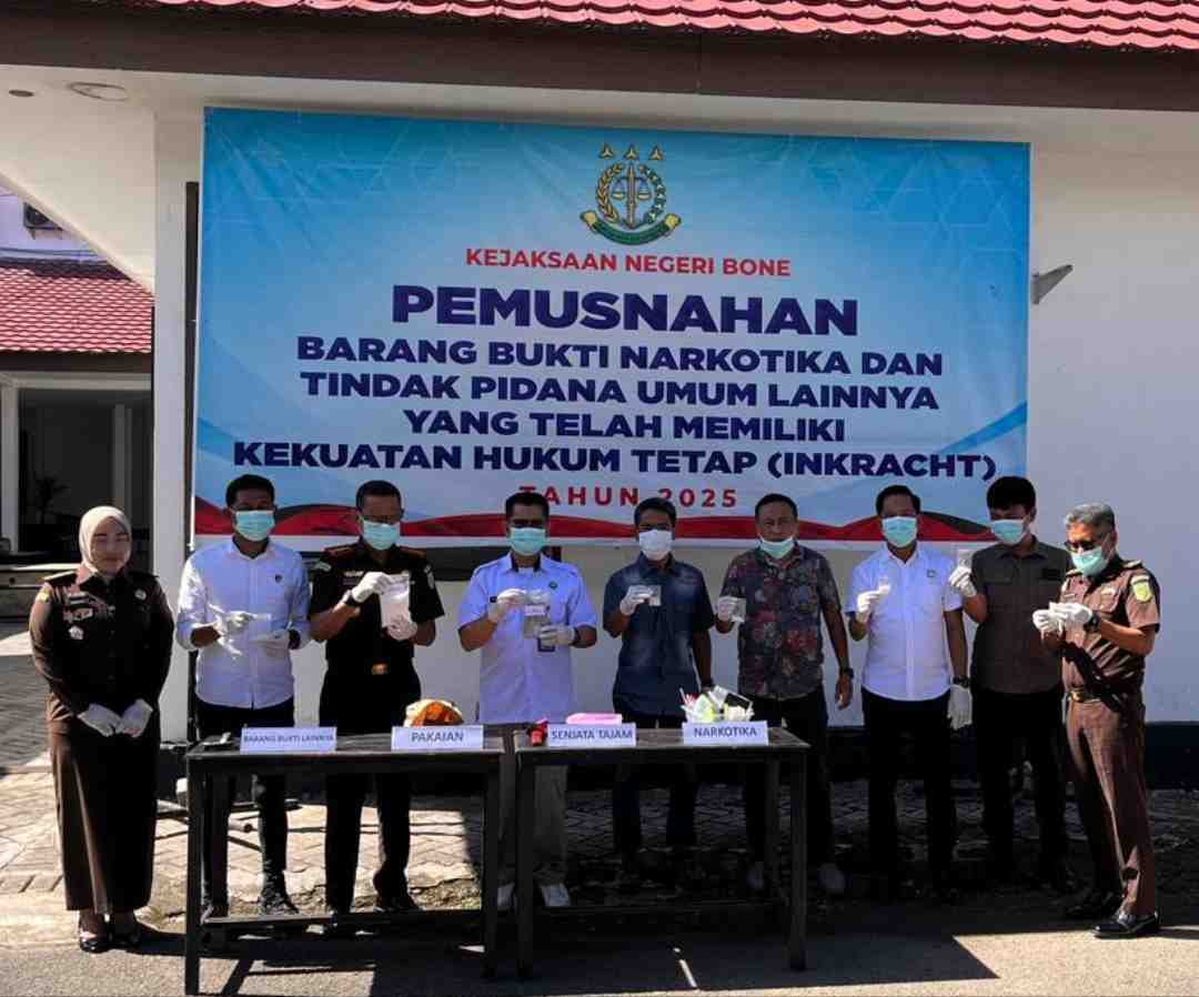 BONE, NALARMEDIA — Kejaksaan Negeri (Kejari) Bone menggelar pemusnahan barang bukti, Rabu (3 Desember 2025).