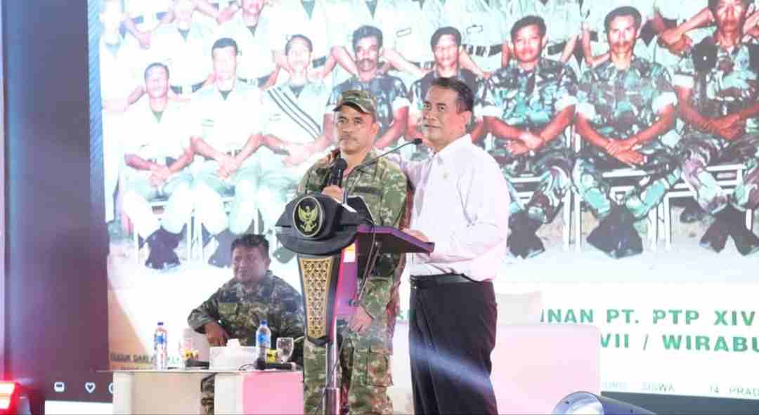 GOWA, NALARMEDIA — Menteri Pertanian (Mentan) Andi Amran Sulaiman memberikan pesan titipan penuh motivasi di hadapan ribuan peserta Jambore Kepala Desa se-Sulawesi Selatan yang digelar di Rindam XIV/Hasanuddin, Pakatto, Bontomarannu, Gowa, Jumat (12 Desember 2025).