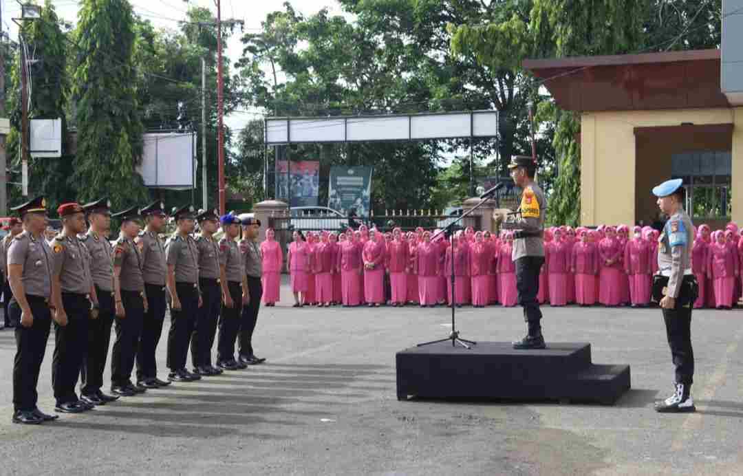Upacara tersebut turut dihadiri Wakapolres Bone Kompol Antonius Tutleta, S.Pd., para pejabat utama Polres Bone, serta Ketua Bhayangkari Cabang Bone Shita Sugeng bersama jajaran pengurus Bhayangkari.