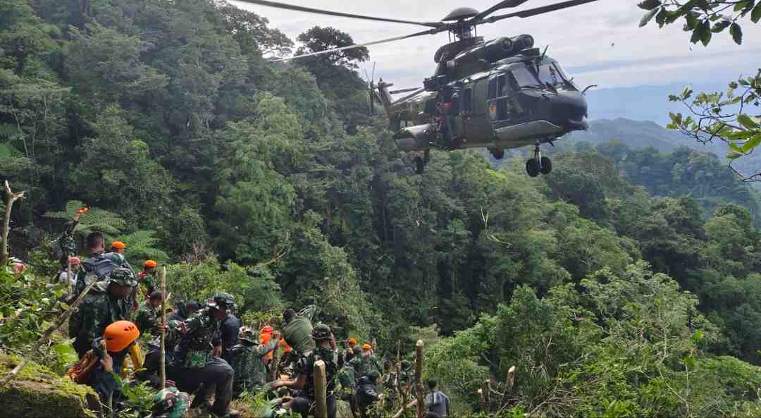 Perjuangan keras dilakukan Tim SAR Gabungan dalam melakukan evakuasi korban pesawat ATR 42-500 yang mengalami kecelakaan di kawasan Gunung Bulusaraung, Kecamatan Balocci, Kabupaten Pangkep. (ist)