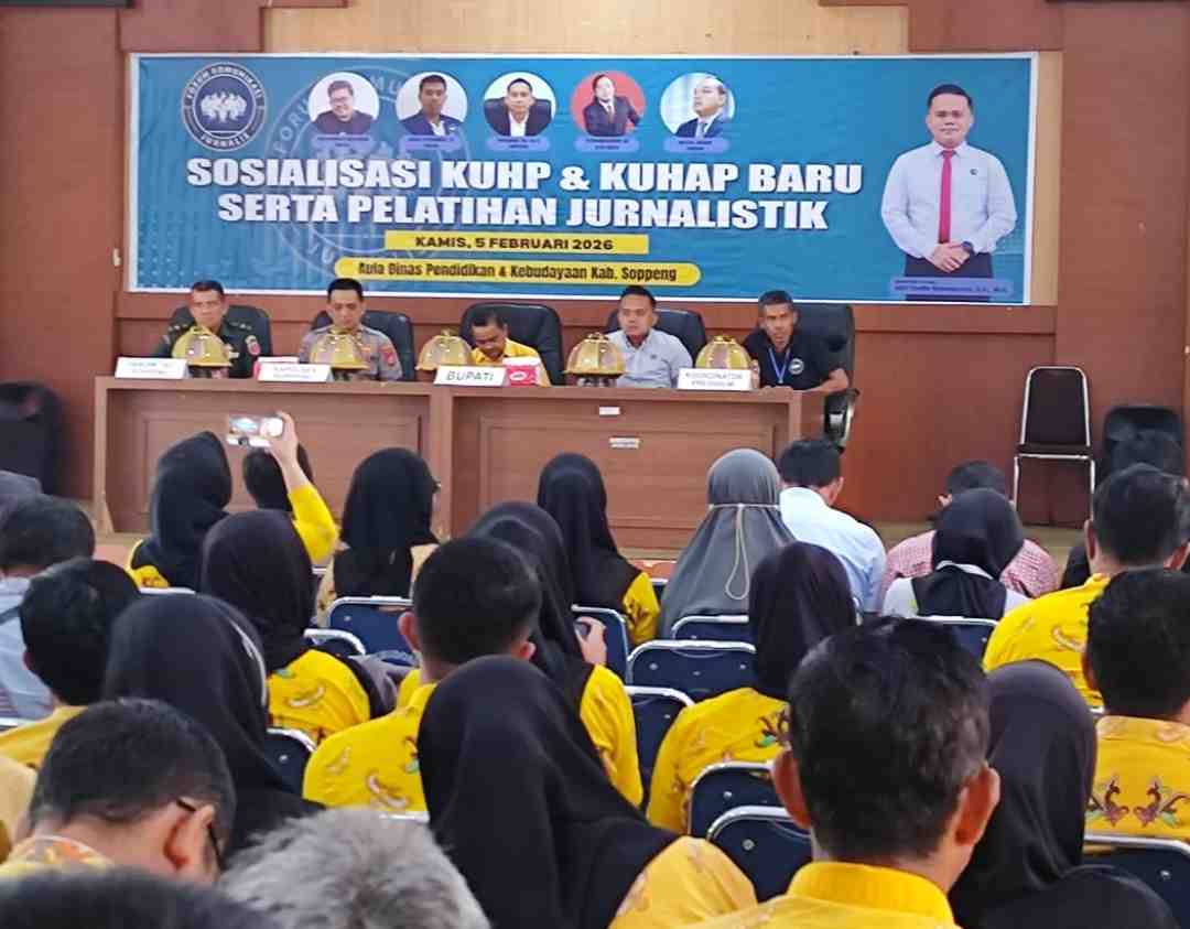 Menyadari hal itu, polisi dan wartawan di Kabupaten Soppeng hadir dalam satu panggung. Pelatihan jurnalistik sekaligus Sosialisasi KUHP – KUHAP Baru.