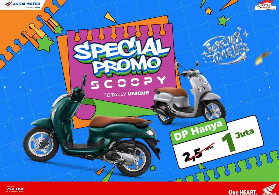 Bagi pencinta gaya dan keunikan, Asmo Sulsel menghadirkan Special Promo Scoopy “Totally Unique” dengan DP hanya Rp1 juta.