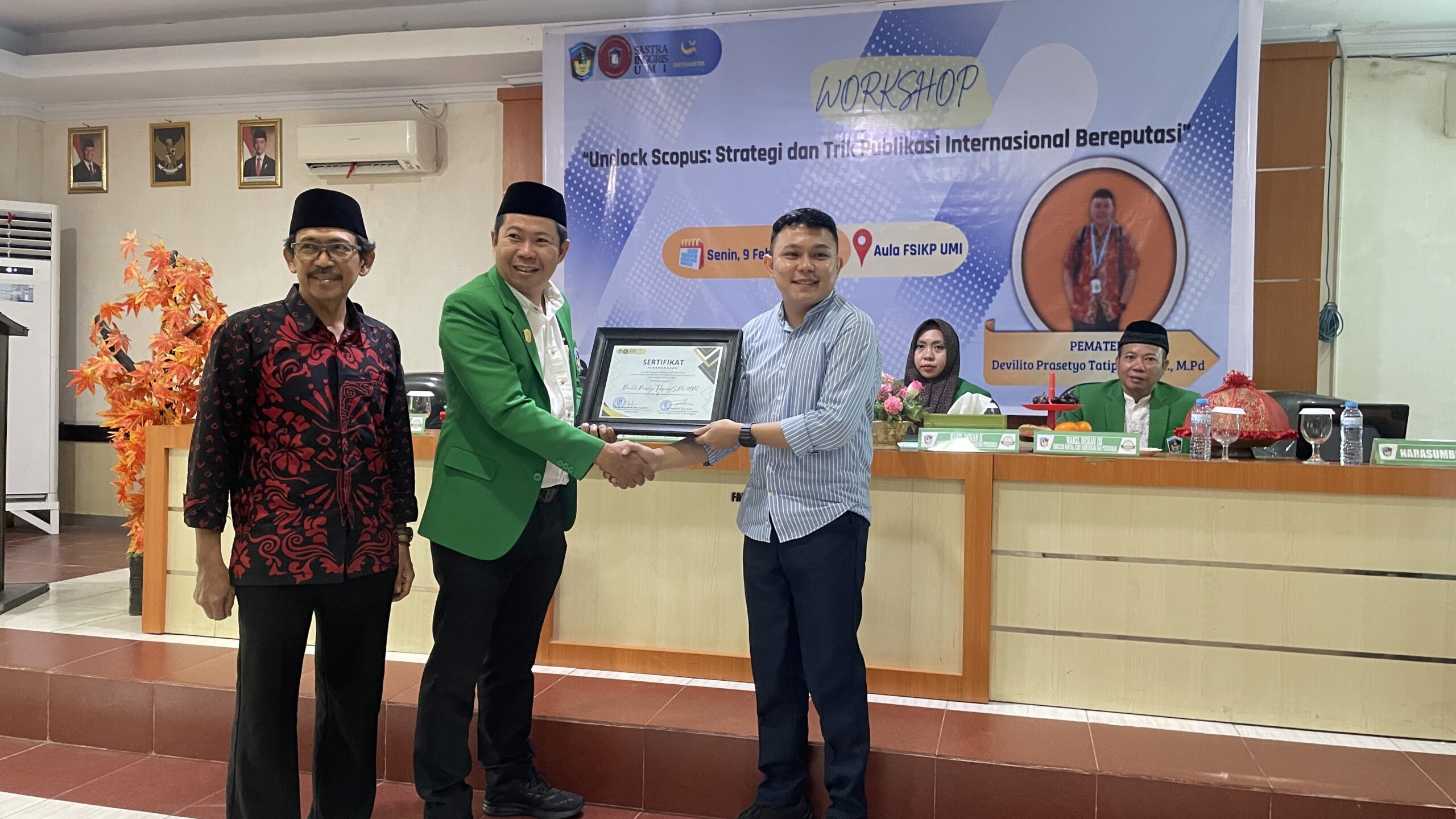 MAKASSAR, NALARMEDIA — Prodi Sastra Inggris Fakultas Sastra, Ilmu Komunikasi, dan Pendidikan (FSKIP) Universitas Muslim Indonesia (UMI) gelar workshop dengan topik “Unclok Scopus: Strategi dan Trik Publikasi Internasional Bereputasi”, di Aula FSKIP, Senin (9/2/2026).