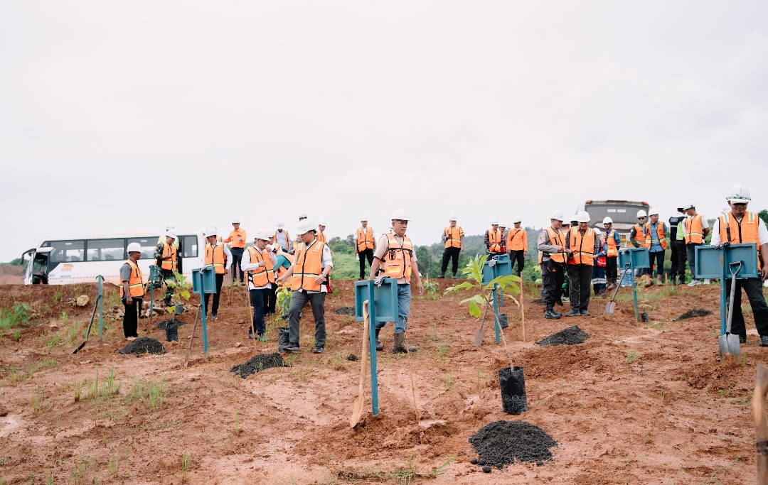 Setelah itu, rombongan melanjutkan agenda dengan melakukan penanaman pohon di area reklamasi sebagai wujud komitmen berkelanjutan perusahaan dalam pemulihan lahan pascatambang.