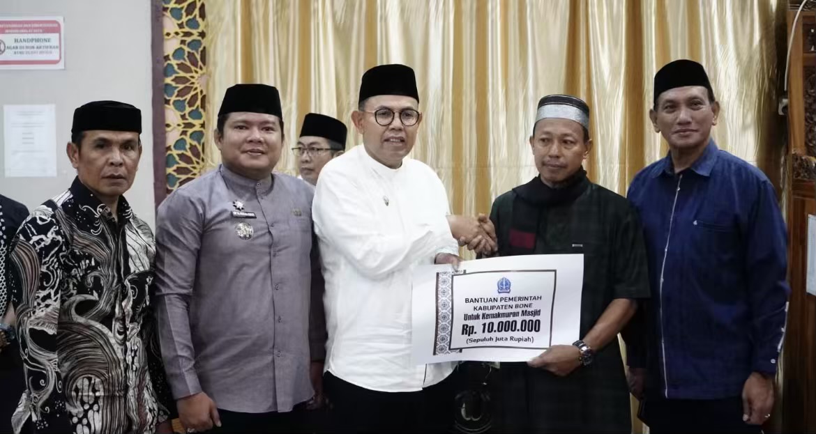Selain itu, Andi Akmal menyerahkan bantuan Pemkab Bone untuk kemakmuran masjid. Namun nominal Rp 10 juta bantuan itu langsung diubah untuk renovasi masjid yang setiap tahun ditempati oleh calon jemaah haji berkumpul di Bone Barat.