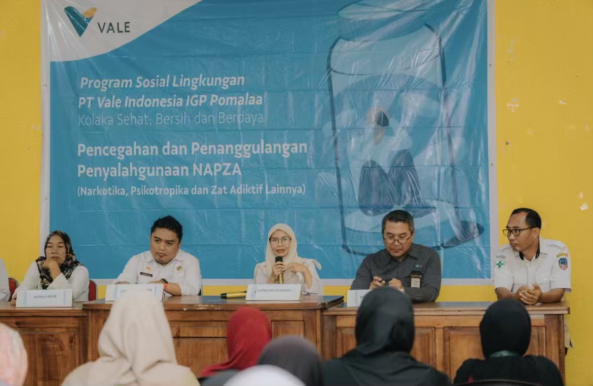 PT Vale Indonesia IGP Pomalaa melaksanakan kegiatan penyuluhan pencegahan dan penanggulangan penyalahgunaan Narkotika, Psikotropika, dan Zat Adiktif lainnya (Napza) di Balai Desa Sopura, Kecamatan Pomalaa, Kabupaten Kolaka.