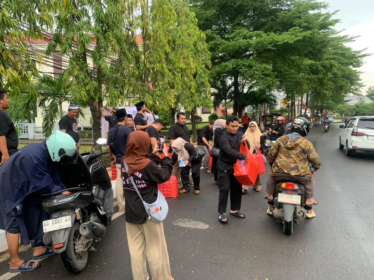 Kegiatan ini berlangsung menjelang waktu berbuka puasa di depan Bank Rakyat Indonesia Cabang Sungguminasa.