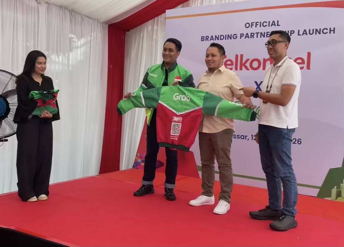 Kolaborasi Telkomsel-Grab diluncurkan di Kantor Telkomsel Branch Makassar, Kamis (12 Maret 2026), diwujudkan melalui penggunaan atribut branding Telkomsel, berupa jaket untuk Mitra Driver di Makassar serta rompi branding di tiga kota lainnya.