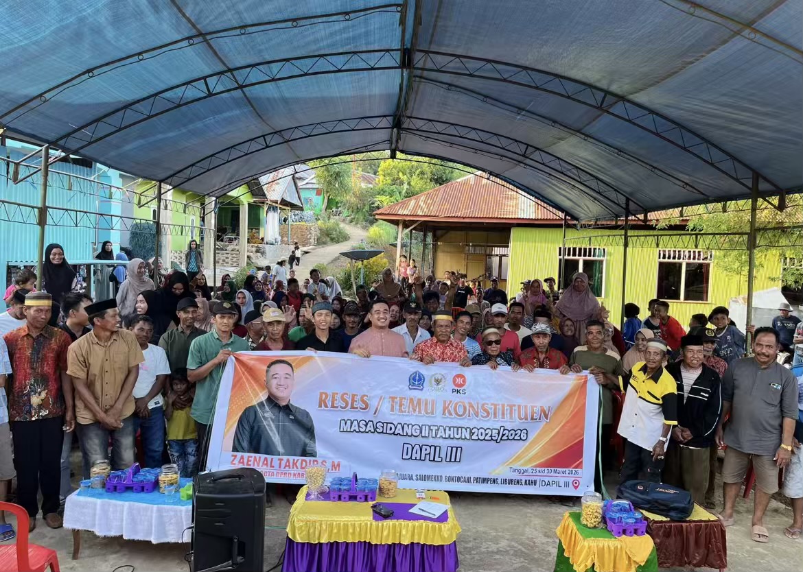 BONE, NALARMEDIA — Anggota DPRD Kabupaten Bone, Zaenal Takdir, SM yang juga menjabat sebagai Ketua Fraksi Partai PKS DPRD Kabupaten Bone, melaksanakan kegiatan reses masa sidang di Dusun Maniung, Desa Manera, Kecamatan Salomekko, Ahad (29 Maret 2026).