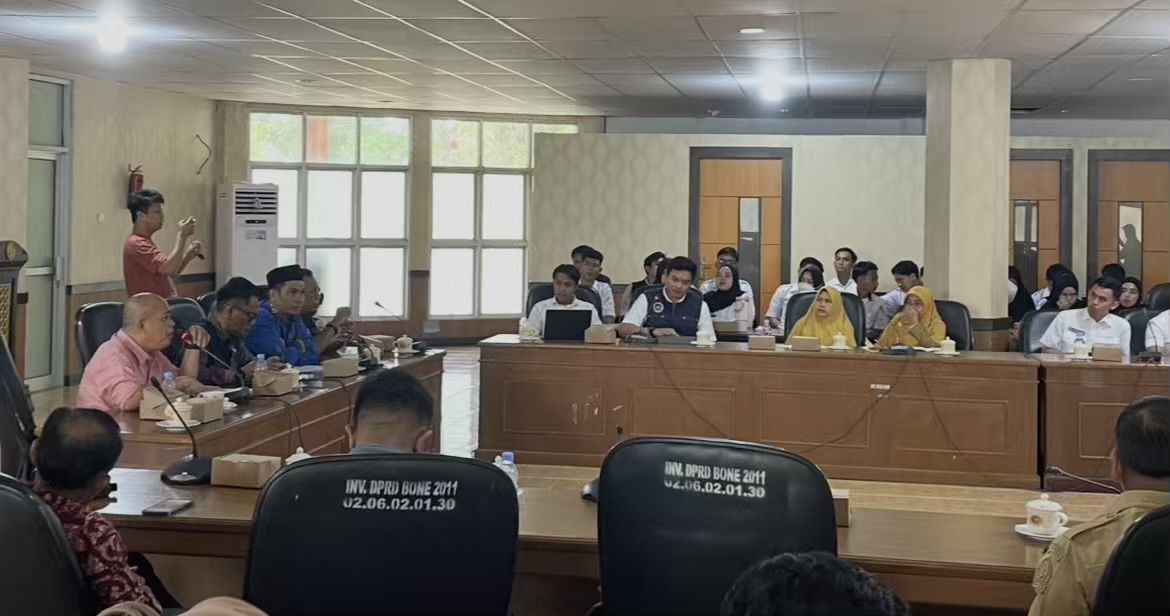Kegiatan tersebut berlangsung di ruang Badan Anggaran DPRD Kabupaten Bone, Selasa (31 Maret 2026), dengan menghadirkan sejumlah pihak terkait serta perwakilan mahasiswa.