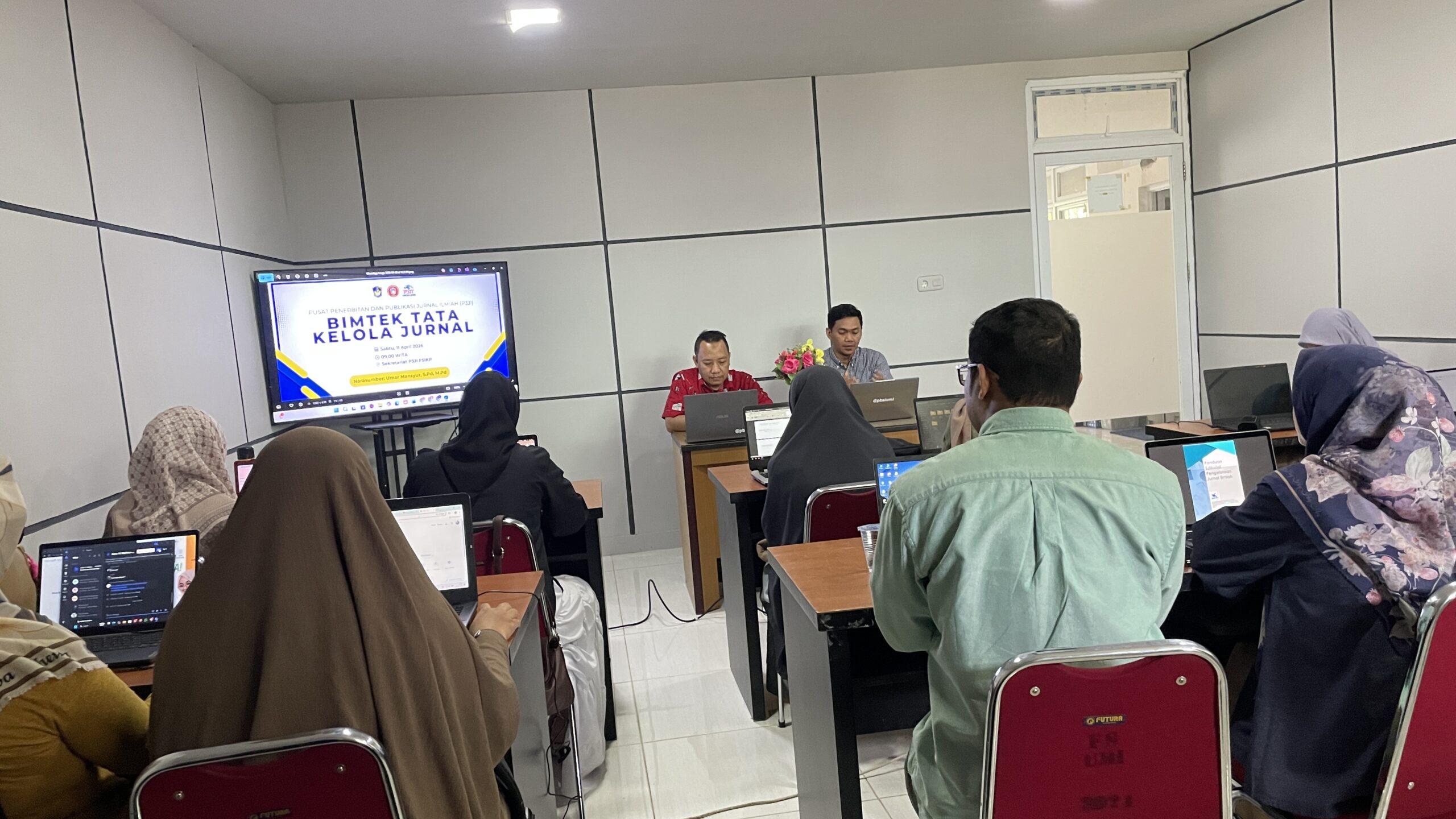 MAKASSAR, NALARMEDIA — Pusat Penerbitan dan Aplikasi Jurnal Ilmiah (P3JI) Fakultas Sastra, Ilmu Komunikasi dan Pendidikan (FSIKP) Universitas Muslim Indonesia (UMI) menggelar Bimbingan Teknis (Bimtek) Tata Kelola Jurnal Ilmiah di Ruangan P3JI FSIKP UMI, Sabtu (11/04/2026).